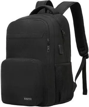 hk Backpack for Men Business Slim Backpack with USB Charger Computer Lightweight Anti-theft Travel Backpacks 15.6 inch Water Resistant Laptop Bag for Work Office College-Black