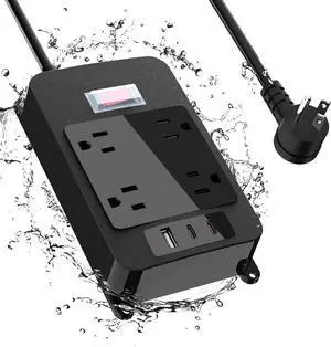 Outdoor Power Strip with USB C, Heavy Duty Waterpoof Surge Protector with 4 Outlets, 2 USB C Ports, 6ft Flat Plug Extension Cord Wall Mount for Bathroom, Kitchen