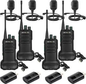 Retevis RB29 2 Way Radio Long Range,Two Way Radios with Waterproof Shoulder Mic,USB Charging Base,Rugged Walkie Talkies Rechargeable for Business Worksite Construction Site Industrial(4 Pack)