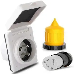 WISDUM For 30AMP RV Power Inlet Outlet Shore Power Kit W/Boot Cord Protector 125V NEMA L5-30P L5-30R Male Female Connector Plug