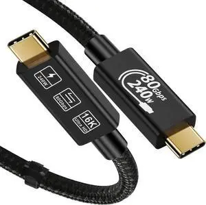 WISDUM Thunderbolt 5 Cable [1.6FT/0.5M], USB4 Cable Support 80GBps Data Transmission, 240W (48V5A) PD Super Fast Charge, 16K@60Hz HD Extension for SSD, Samsung,Steam Deck,Switch,eGPU,MacBook