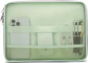 Nylon Puffy Zipping Medium Laptop Sleeve 9.75 x 13 MacBook Bag Laptop Case for MacBook Pro MacBook Air Chromebook HP Computer Matcha Green