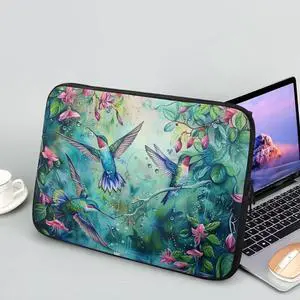 Hummingbird Flower Computer Sleeve for Women Laptop Sleeve 17 inch Neoprene Laptop Covers with Padded Compartment Lap Top Case Computer Carrying Bag