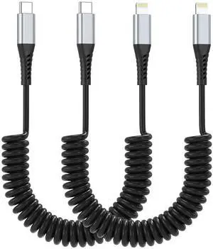 Coiled USB C to Lightning Cable 2 Pack Retractable iPhone Charging Cable for Car 3FT USBC to Lightning Cable for iPhone 14 13 12 11 Pro Max Mini 10 8 7 Plus XR XS SE AirPod