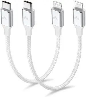 2Pack Short USB C to Lightning Cable 1ft PD USB C to iPhone Charger Cable MFi Certified Nylon Braided Short iPhone Charger Cord Fast Charging for iPhone 14 13 12 11 Pro Max XR XS X 8 Plus SE iPad