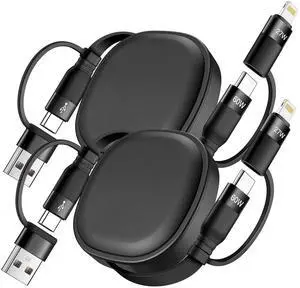 Multi Charging Cable 2Pack 5 in 1 Retractable Lightning Charger Cable 60W USB C to USB C Fast Charging Multiple USBC Cord Multi Car Charger for iPhone 17/16/15/14 Pro Max iPad S25 S24 Tablets