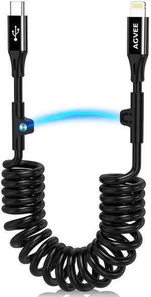 3ft Coiled Short USB-C to Lightning Charging Cable [MFI Certified] 30W PD Fast Charger Cord in Car for iPhone 14/13/12/11/XS/8/7/6/5 CarPlay iPad iPod Black
