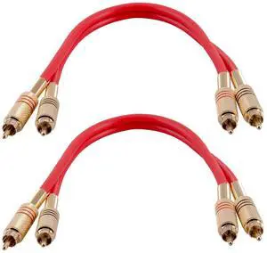 Speakers Premium 1 Foot Dual RCA Male to Dual RCA Male Audio Patch Cables Pack of 2 Red Color Cables 2RCA to 2RCA Audio Cord