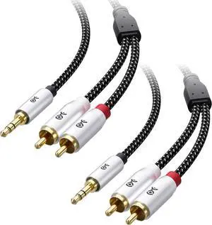 2-Pack Short RCA to 3.5mm Stereo Audio Cable - 3ft RCA to Aux Cable 3.5mm to L/R Cord Black