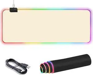 RGB Large Gaming Mouse Pad Extended Mouse Pad with 14 Lighting Modes Superior Micro-Weave Cloth Non-Slip Base 800 x 300mm / 31.5 × 11.8 in (Milk Tea)