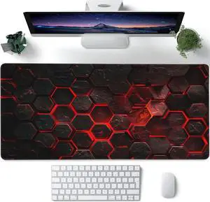 Large Gaming Mouse Pad for Desk Red Honeycomb Science Technology Desk Mat Honeycomb Hexagon Desk Pad Extended Big Computer Keyboard Mouse Pad with Non-Slip Base Stitched Edges 35.4x15.7