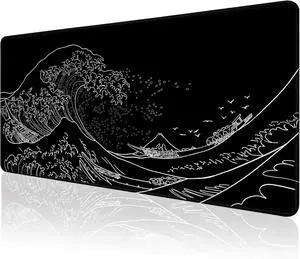 Gaming Mouse Pad for Desk Large Mousepad Laptop Black White Japanese Wave Anime Mouse Mat Long XXL Waterproof Keyboard Pads Big Non-Slip Computer Mousepads for Game Office Home31.5 x 11.9 in