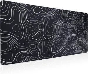 XL Topographic Mouse Pad Long Desk Mat Black Mouse Keyboard Pad Desk Pad Large Gaming Mouse Mat Non-Slip Rubber (31.5 x 15.7 x 0.12 Inches)