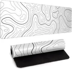 White Big Mousepad for Gaming Large Topographic Map Washable Desk Pad with Stitched Edge Office Supplies and Decor 31.5x11.8 Computer Keyboard Protector