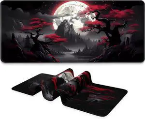 Long Gaming Mouse Pad Extended Anime Large Desk Pad with Non-Slip Base Full Keyboard Mat with Stitched Edges for Gaming and Office 31.5 x 11.8 inches (Wash Painting)