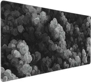 Extended Gaming Mouse Pad Japanese Cloud Pattern XL Size 35.4 x 15.7 inches Black and Gray Non-Slip Base