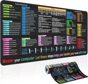 Excel/Word/Power Point/Windows Mouse pad Non-Slip&Waterproof Large Gaming Office pc Desk mat Over 200 Keyboard Shortcuts Mousepad(27.6L x 11.8W inches)