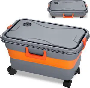 Collapsible Bucket 5.5 Gallon for Car Washing, Car Wash Bucket with Wheels, Handle, Drain Plug and Water Outlet, Foldable for Mop Cleaning, Camping, RV, Pet Bathing and Laundry