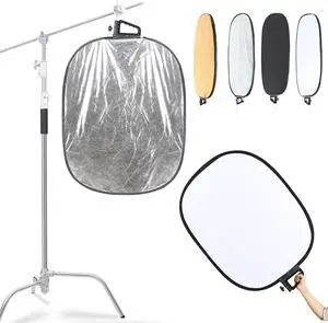 5 in 1 Photography Reflector 27x35inch (72x90cm) Collapsible Light Reflector with Handle & Connection Adapter,Portable Light Reflectors Diffuser Panel Photography Kit for Studio Video&Outdoor Lighting