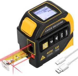 4-in-1 Laser Tape Measure with Level and Crosshairs, 16FT AutoLock Measuring Tape and 130FT Laser Measurement Tool with Large LCD Display, Area, Volume, Pythagorean, Cosine