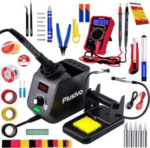 Soldering Iron Station Kit Digital Display Helping Hands 60 W 5 pcs Solder Tips, Solder Wire, Digital Multimeter °C/ºF Conversion, Standby/Sleep Mode, Calibration Support for Electricians from