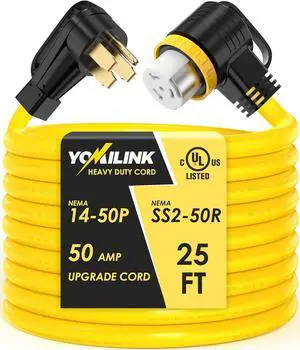25 Feet 50 Amp RV/Generator Cord, UL Listed, 100% Copper Wire, NEMA 14-50P to SS2-50R Twist Lock, Newly Designed 90°Grip Handle, 6/3+8/1 Gauge STW Wire