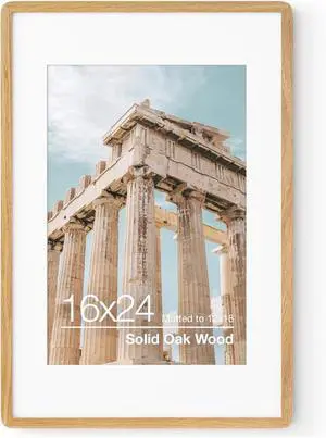 16x24 Poster Frame | Solid Oak Wood 16 x 24 Picture Frame | 24x16 Poster Frame With Mat For 12x18 | Tempered Glass And Hanging Hardware Included | 16 By 24 Frame Wood (Natural Oak, 1 Pack)
