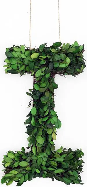Modern Home 12" Real Preserved Boxwood Monogram Wreath Letters - I