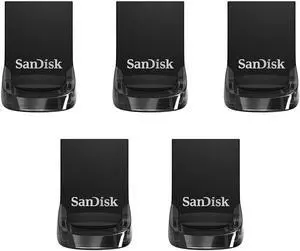 SanDisk 64GB 5-Pack Ultra Fit USB 3.1 Flash Drive (5x64GB) - SDCZ430-064G-B5CT, Black