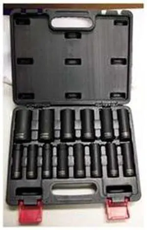 WESTWARD 4PRG5 1/2" Drive Impact Socket Set, Metric, 14 pcs