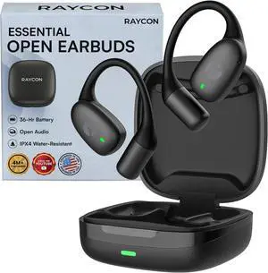 Essential Open Ear Earbuds Open Ear Headphones Earbuds Wireless Bluetooth Sweat & Water-Resistant Earphones Running Headphones with Ultra-Lightweight Design 36 Hours Battery Life (Black)