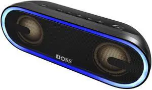 DOSS SoundBox Pro Bluetooth Speaker, 20W Stereo Sound, Active Extra Bass, 20H Playtime, Multi-Colors Lights, Wireless Stereo Pairing, IPX6 Waterproof for Garden, Hiking, Camping, Beach, Party-Blue