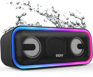 DOSS SoundBox Pro+ Bluetooth Speaker, Immersive 24W Stereo Sound with Booming Bass, IPX6 Waterproof, 15H Playtime, Mixed Colors Lights, Wireless for Backyard, Hiking, Garage, Party-Black