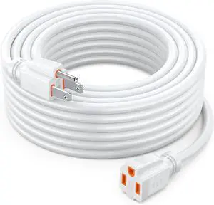 15-Feet (4.6Meter) Long Polarized White US 2-Prong Male-Female Extension Power Cord,16AWG 2 Prong Extension Cable 2-Prong Male/Female Extension Cord