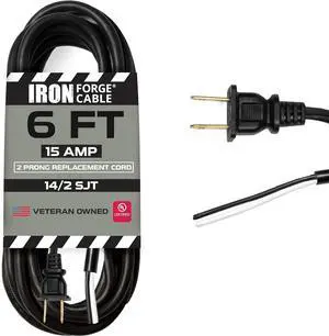 Iron Forge Cable 15 Amp Power Cord Replacement Two Prong Polarized Plug with Open End - 6 ft Black Extension Cable, 14 Gauge - 2 Wire 14/2 SJT
