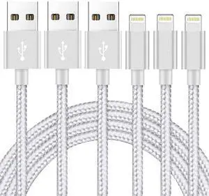 Ximytec iPhone Charger Cable [Mfi-Certified] 3Pack 10ft Nylon Braided High Speed USB Charging Cord Compatible with iPhone 12/11/XS/XR/X/8/7/6/5/iPad-SilverGray