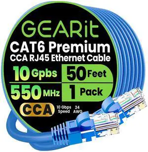 GEARit Cat 6 Ethernet Cable CCA (50 feet) LAN Network Cord, UTP, Internet, Network Cable - Supports Cat6 / Cat5e / Cat5 Network Standard - Blue, 50ft