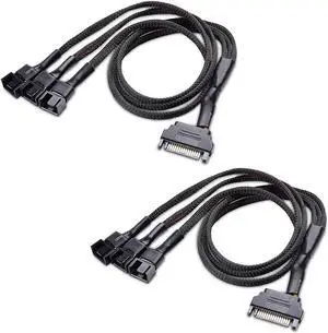 SATA Power Splitter Cables 1 to 5 19.7 in (500 mm), 2Pack15 Pin Male to Female Power Cable Splitter Powers up to 5 Hard Disk Drive, SSD, Optical Drives (2, Black)