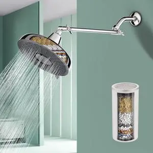 Filtered Rain Shower Head,8-Inch High Pressure Rainfall Showerhead with 10-Inch Extension Arm,3 Spray Modes,Easy InstallationChrome