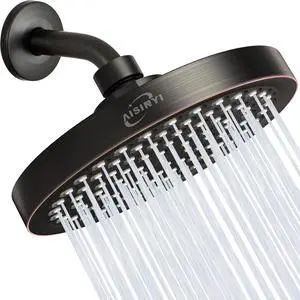 BRIGHT SHOWERS High Pressure Shower Head, 6 Inch Rain Shower Head, 2 Spray Settings Rainfall Shower Heads, Adjustable Angle Replacement Bathroom Showerhead, Easy Installation Oil Rubbed Bronze