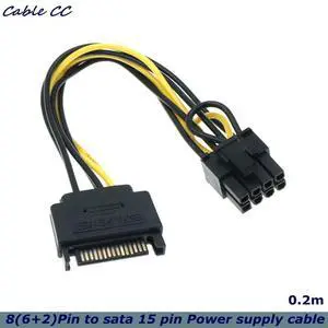 SATA 15 Pin to 8 Pin (6+2 Pin) Male Video Card Power Supply Cable 8.6inch 22cm (1 Pack)