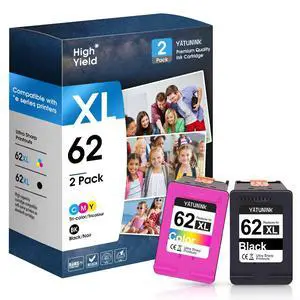 YATUNINK Remanufactured Ink Cartridge Replacement for HP Ink 62 XL Work with HP Envy 7640 5660 5540 5640 OfficeJet 5740 5746 5745 250 200 8040 Series Printer (Black and Tri-Color)