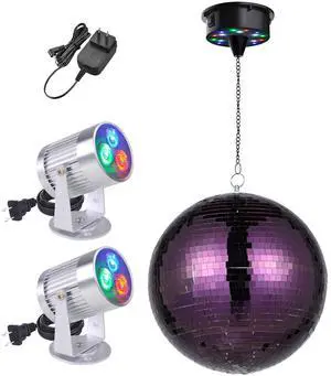 Yescom 16" Disco Mirror Ball 2 RGB Spotlights Rotating Motor Kit Party DJ Club