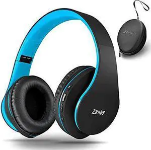 bluetooth headphones over-ear, zihnic foldable wireless and wired stereo headset micro sd/tf, fm for cell phone,pc,soft earmuffs &light weight for prolonged wearing (black/blue)