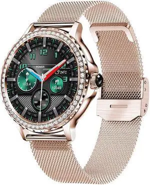 Nx19 Bluetooth Call Female Diamond-Encrusted Smart Watch Blood Pressure Blood Oxygen 100 Sport Mode Smart Watch (Gold Steel)