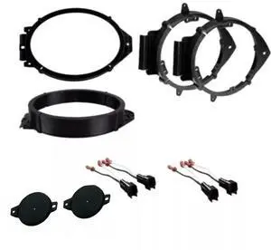 6x9 Front + 6.5" 6.75" Rear Door Car Stereo Speaker Install Adapter Plates + Tweeter Mounts w/Speaker Wire Connectors -Made for Some Chevrolet GMC GM -Compatible Vehicles Listed Below