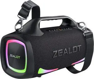 ZEALOT Portable Speakers Bluetooth Wireless, 120W Loud Waterproof Outdoor Speaker with Bass, Subwoofer, 40H Playtime, IP67, EQ, BT 5.3, LED Lights, for Camping Beach Party (Black)