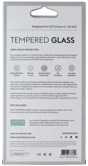 Zizo Tempered Glass Screen Protector for LG Fortune 4/LG K22 - Clear/Black Trim