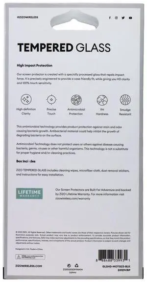 ZIZO Tempered Glass Screen Protector for Motorola Moto G7 PLAY - Black