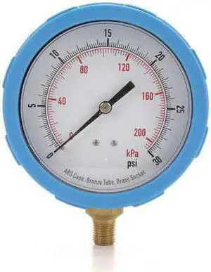 ZORO SELECT 4EFG2 Pressure Gauge, 0 to 30 psi, 1/4 in MNPT, Plastic, Blue